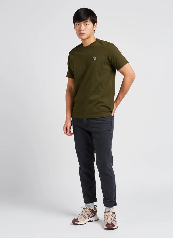 This model is shown wearing Regular-fit organic cotton T-shirt with high neck by SAMSOE SAMSOE