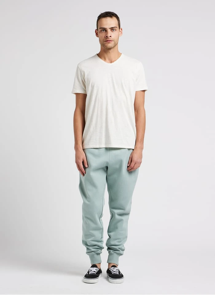 This model is shown wearing V-neck cotton T-shirt by IKKS