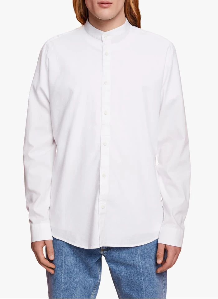 Cotton-blend shirt with mandarin collar by Esprit for Men.