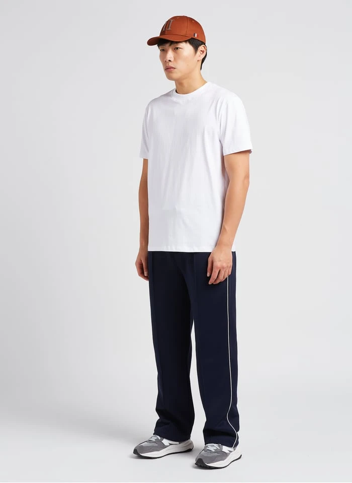 This model is shown wearing Regular-fit round-neck striped cotton T-shirt by GANT, New Balance 57/40 by NEW BALANCE, Embroidered organic cotton cap by LES DEUX