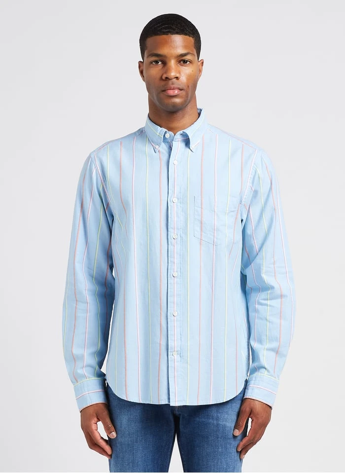 Regular-fit striped cotton shirt with button-down collar by Gant for Men.