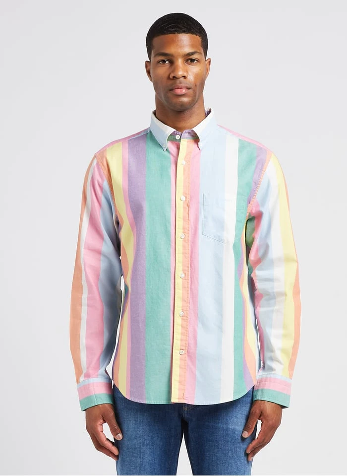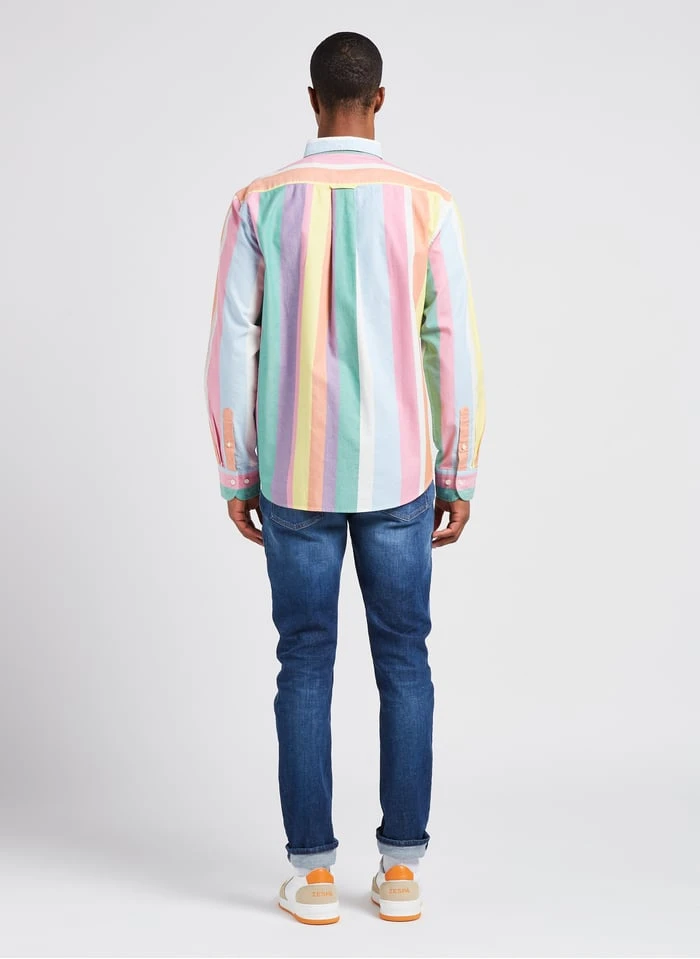 This model is shown wearing Straight organic cotton-blend jeans by CLOSED, Leather low-top sneakers by ZESPA