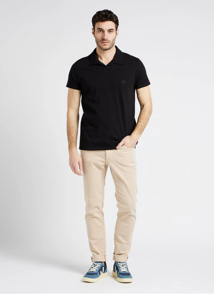 This model is shown wearing Stretch cotton slim-fit jeans by IKKS, Round-toe low-top sneakers by VEJA