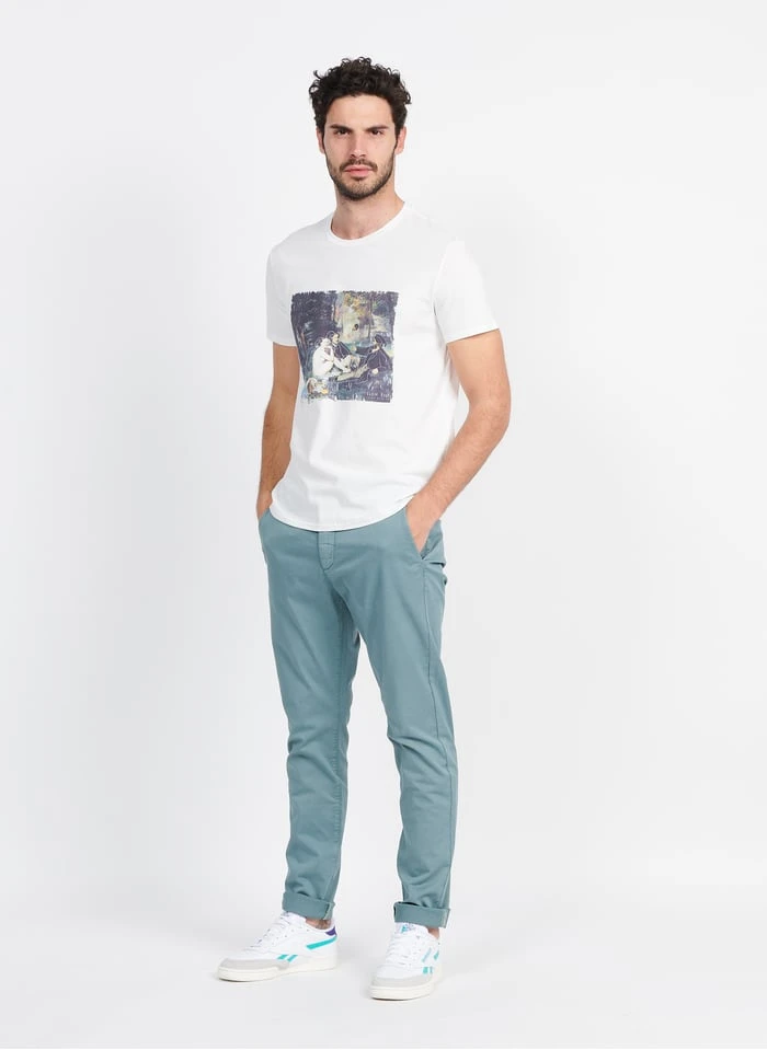 This model is shown wearing Slim-fit print cotton shirt by IKKS