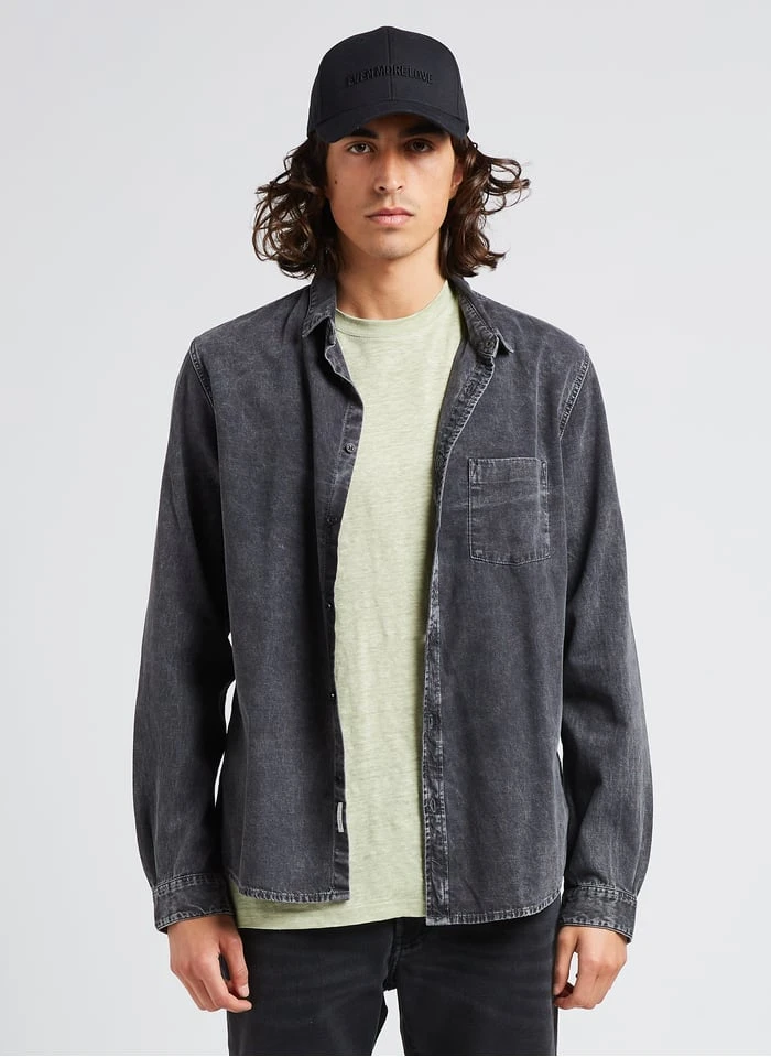 Straight-cut cotton shirt with classic collar by IKKS for Men.