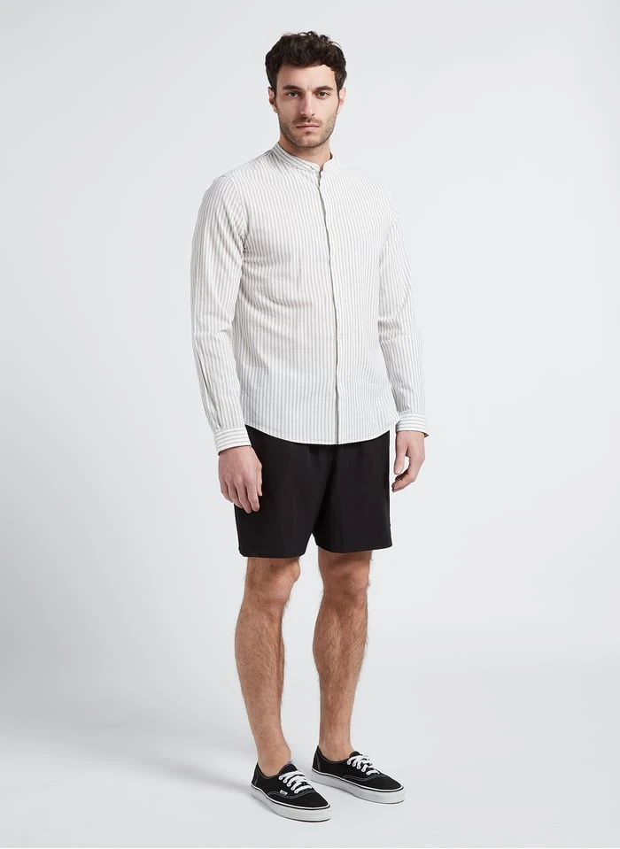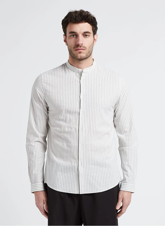 Regular-fit striped cotton-blend shirt with mandarin collar by IKKS for Men.