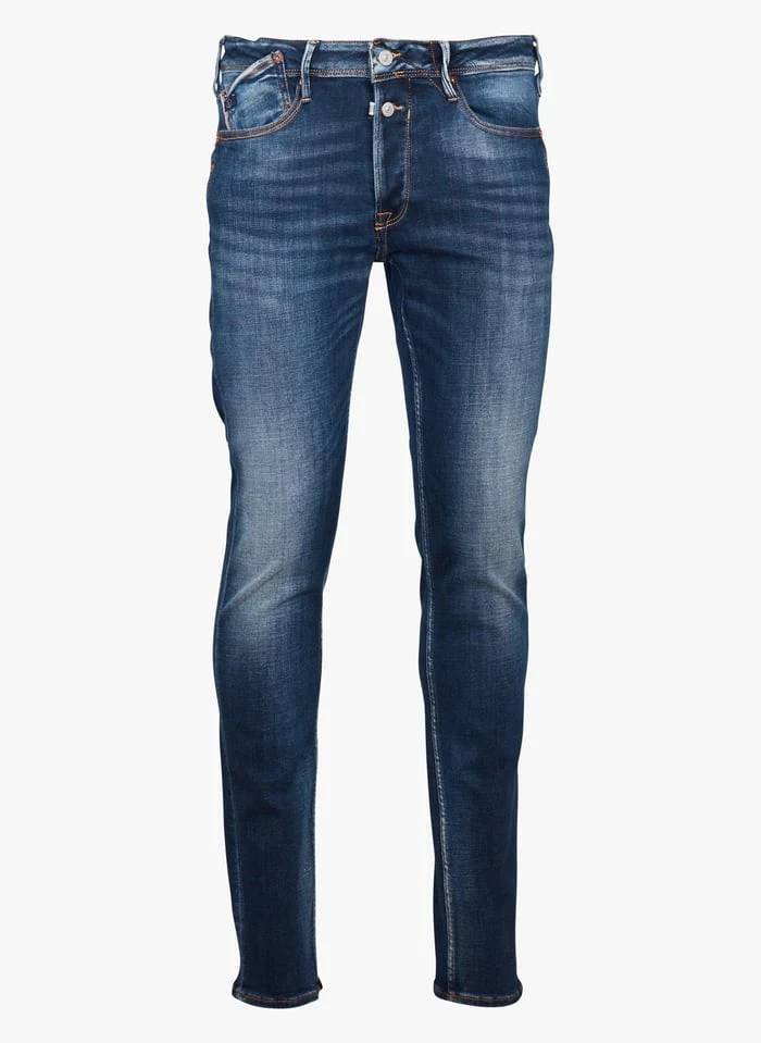 Faded stretch cotton slim-fit jeans by Le Temps des Cerises for Men.