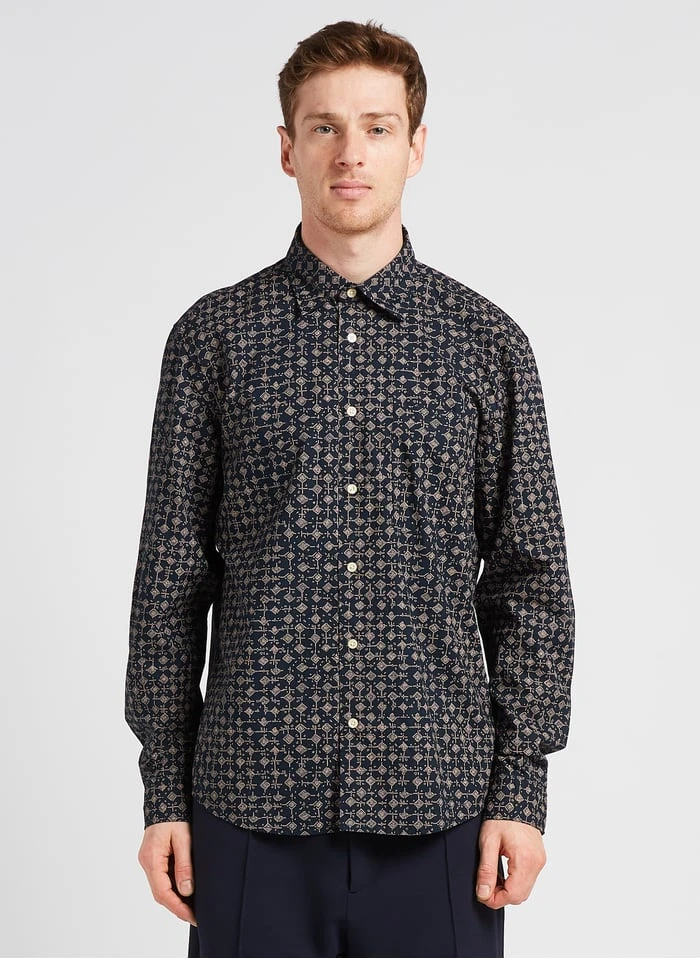 Regular-fit printed cotton shirt with classic collar by Marc O’Polo for Men.