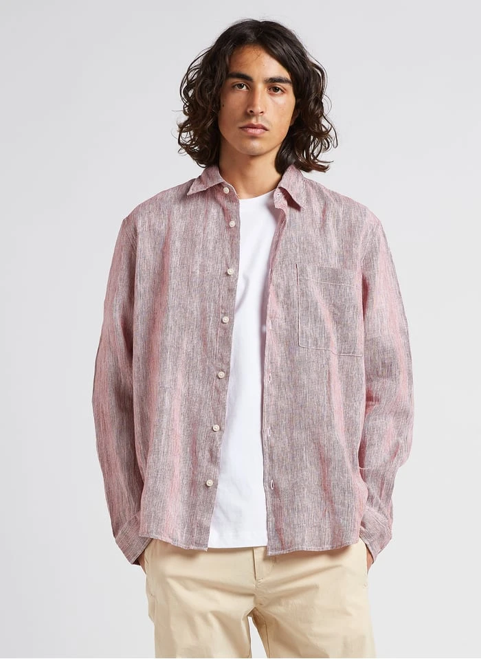 Regular-fit striped linen shirt with classic collar by Marc O’Polo for Men.