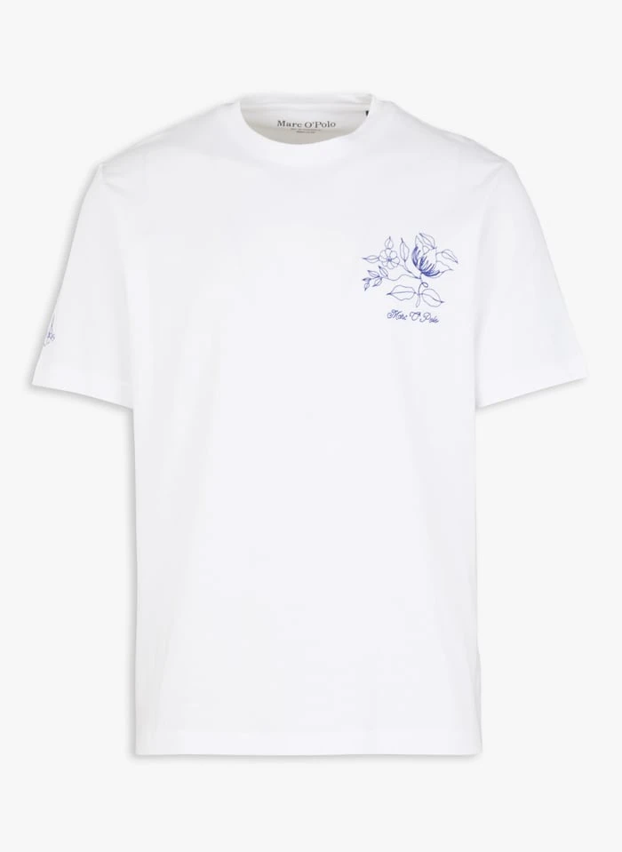 Regular-fit embroidered cotton T-shirt with round neck by Marc O’Polo for Men.