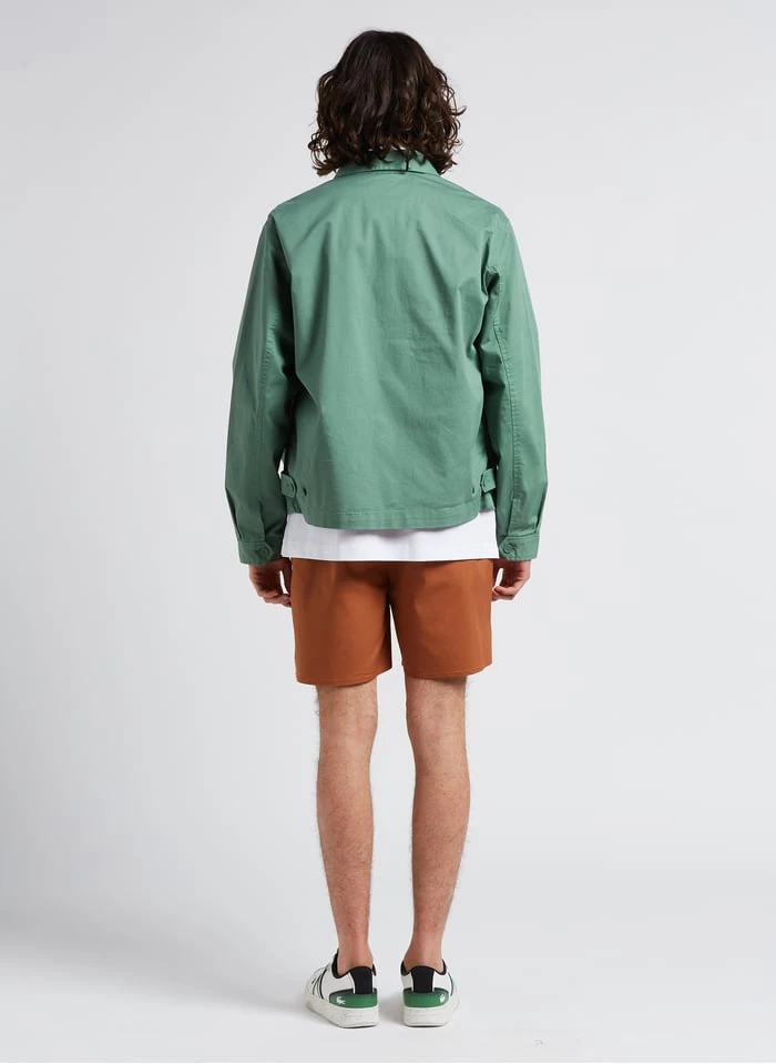 This model is shown wearing Straight-leg cotton-blend pants by MARC O’POLO, Round-toe rain boots by AIGLE