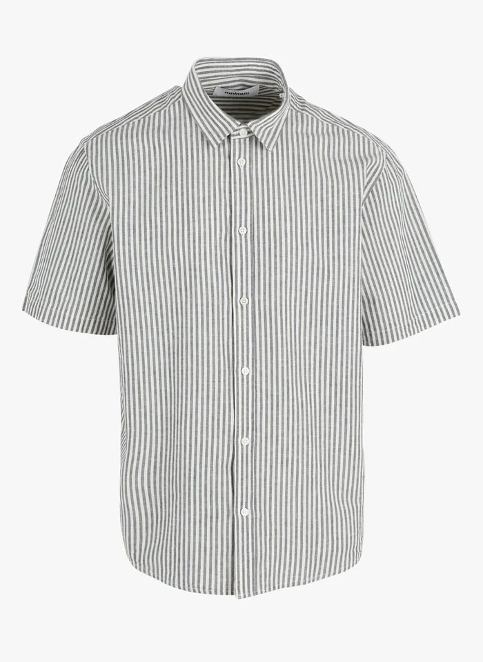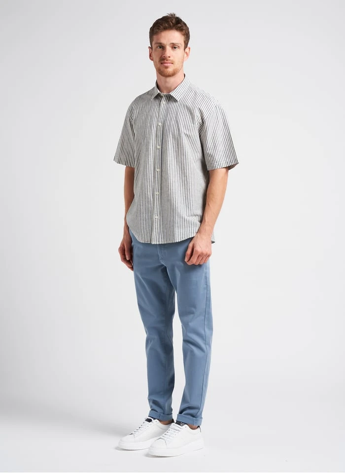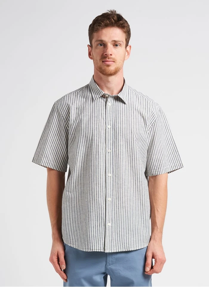 Regular-fit striped organic cotton and linen shirt with classic collar by Minimum for Men.