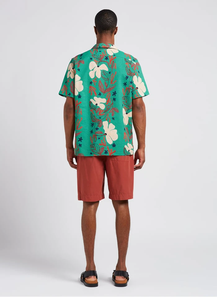 This model is shown wearing Straight-leg cotton shorts by PAUL SMITH, Flat leather sandals by CAMPER