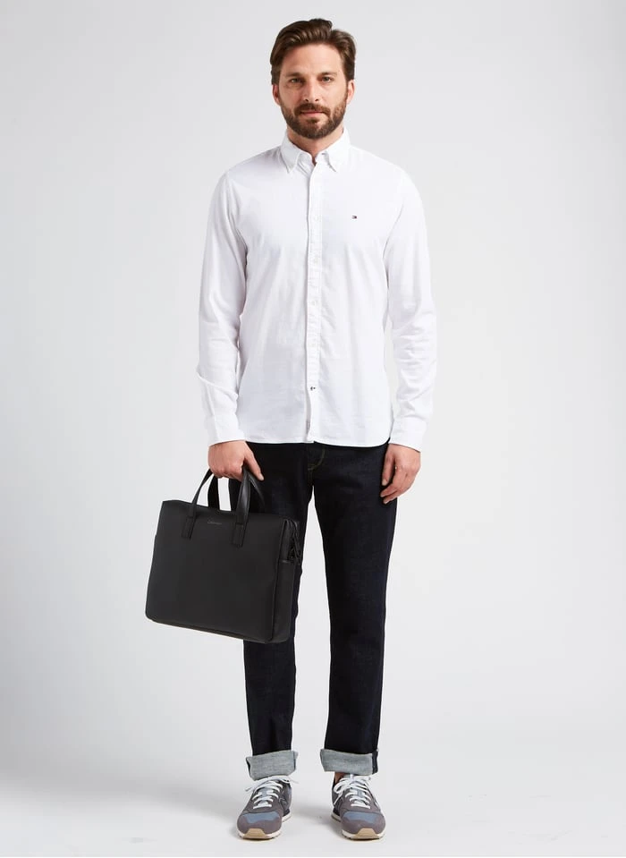 This model is shown wearing Leather low-top sneakers by ADIDAS, Round-neck cotton T-shirt by K-WAY