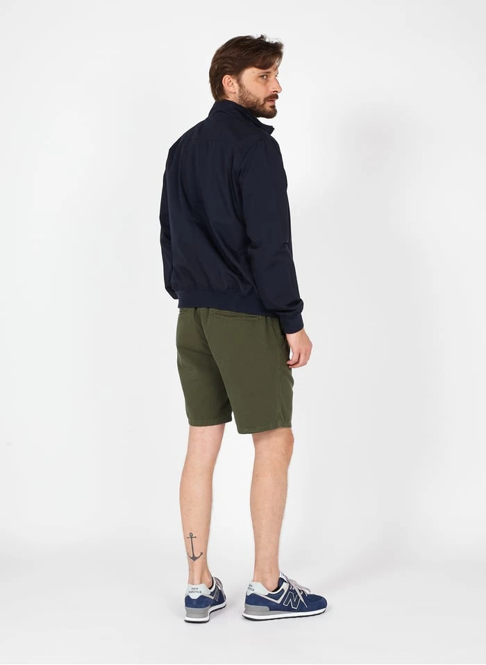 This model is shown wearing Regular-fit cotton and linen-blend shorts by SUPERDRY, New Balance ML574 by NEW BALANCE