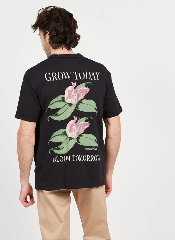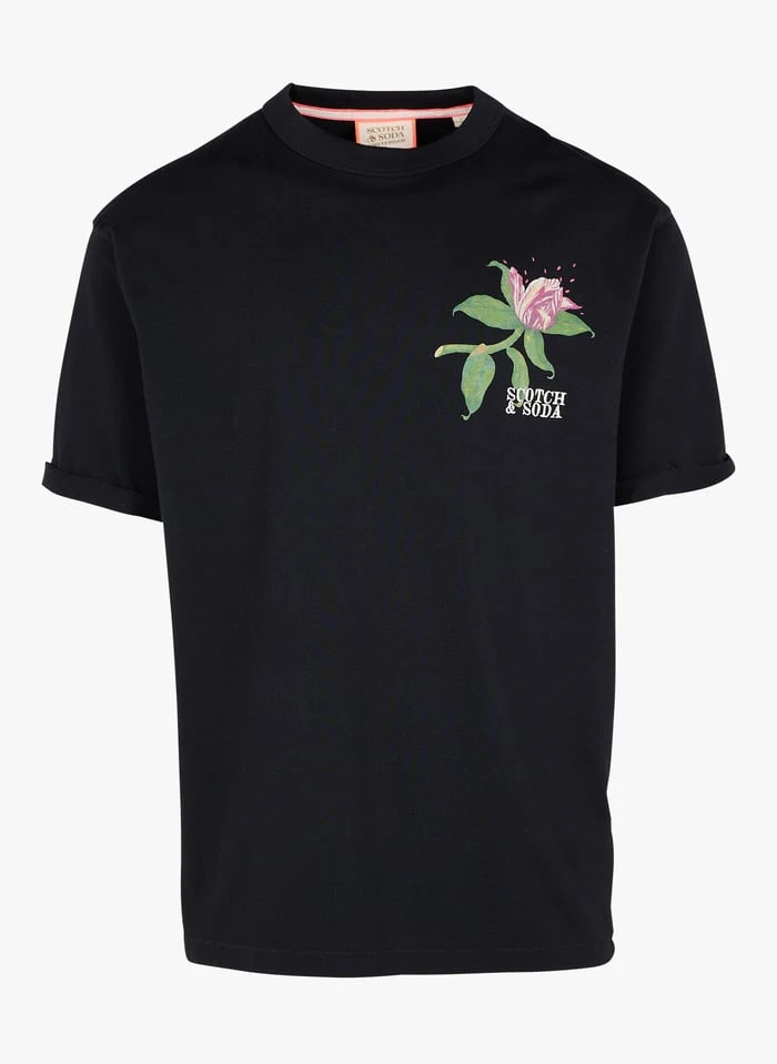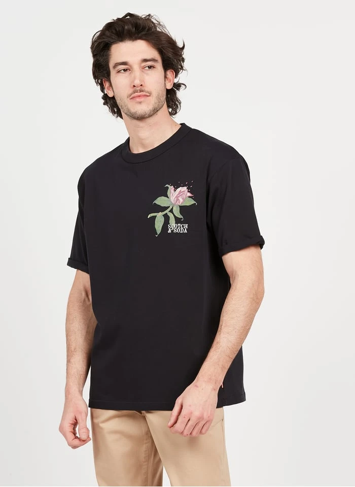 Regular-fit round-neck cotton T-shirt with screen print by Scotch & Soda for Men.
