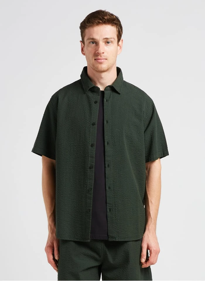 Textured cotton shirt with classic collar by Thinking mu for Men.